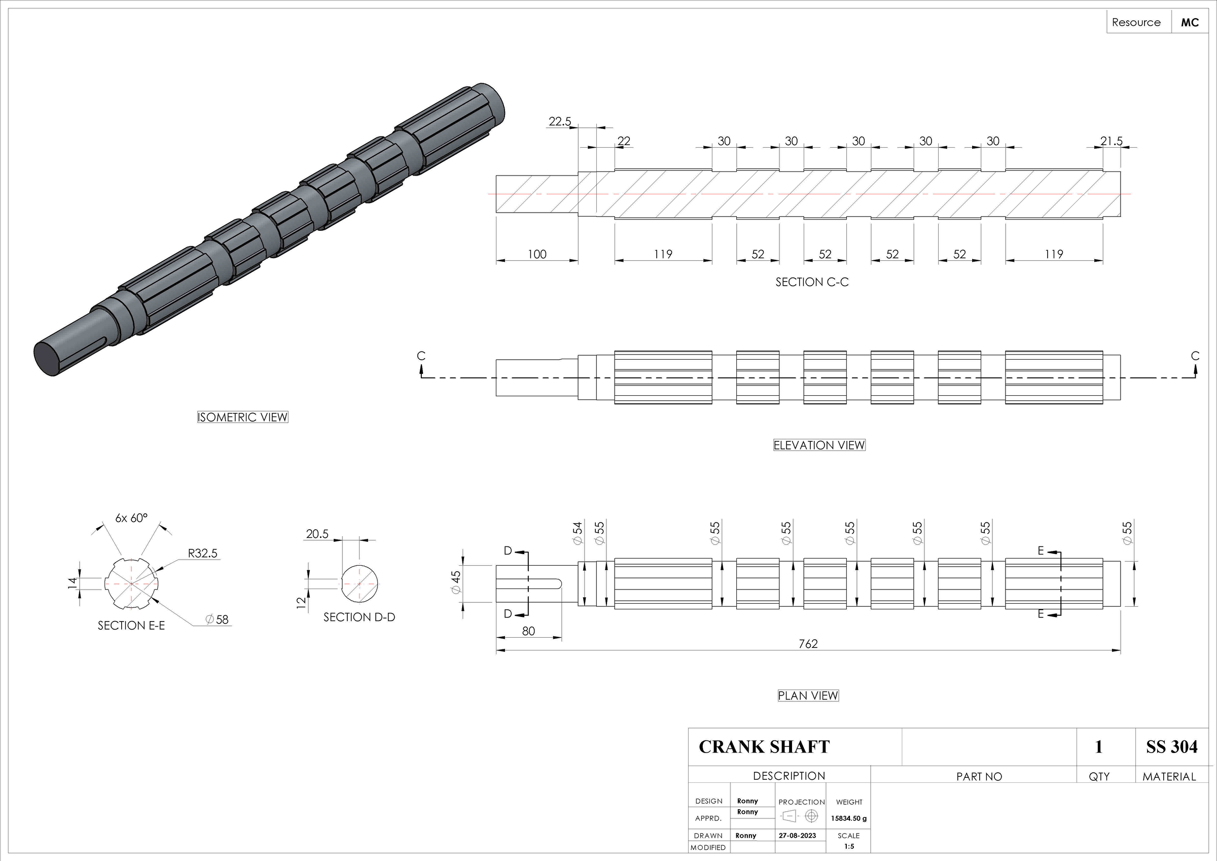 Assembly Drawing of Crankshaft in Solidworks. The Keyway design is done considering the ASME standard. Standardization was considered while designing the parts for easy dismentalling and ease of availability in case of maintenance.