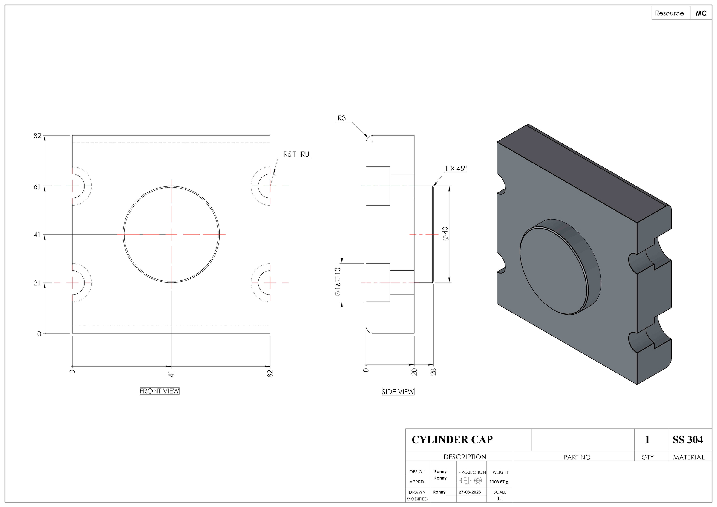 The design was modified as per the manufacturing process i.e CNC machining and the thread profiles were modified for better mating.