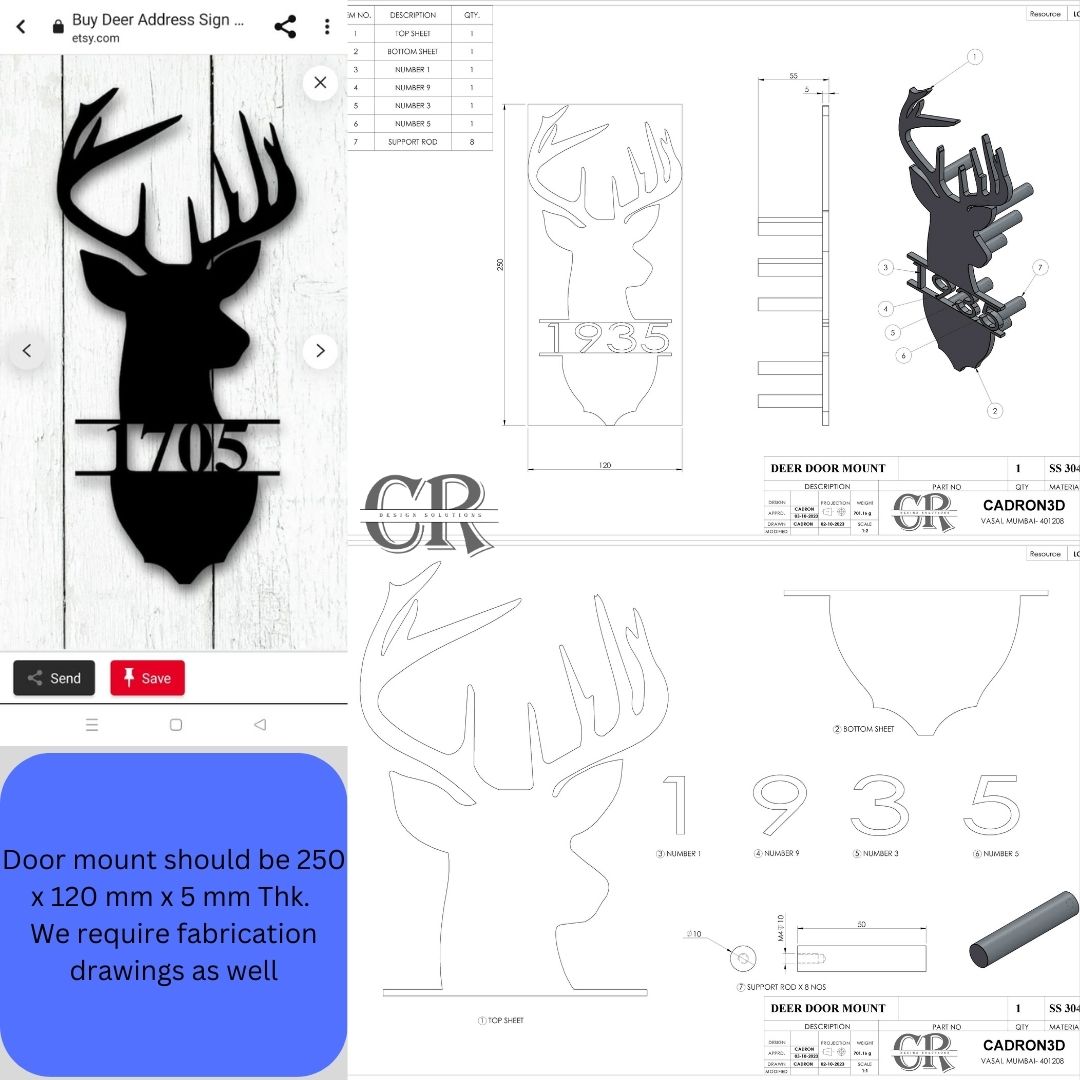 The client had a reference image and wanted an similar Door mount with an dimensional constraint of 250x120 mm and 5mm Thk.