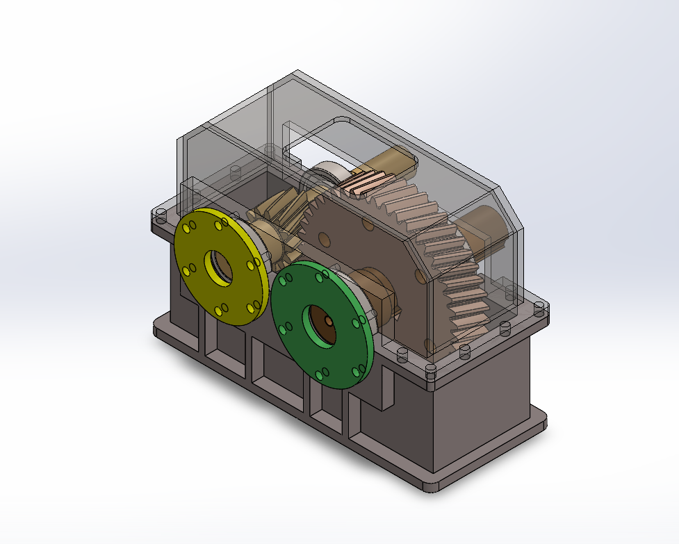 The output speed required was 96 rpm on regular running. So designed the Gearbox with reduction ratio of 15. Gearbox housing is been manufactured with sand casting and then furthur machining process is done via CNC machining.